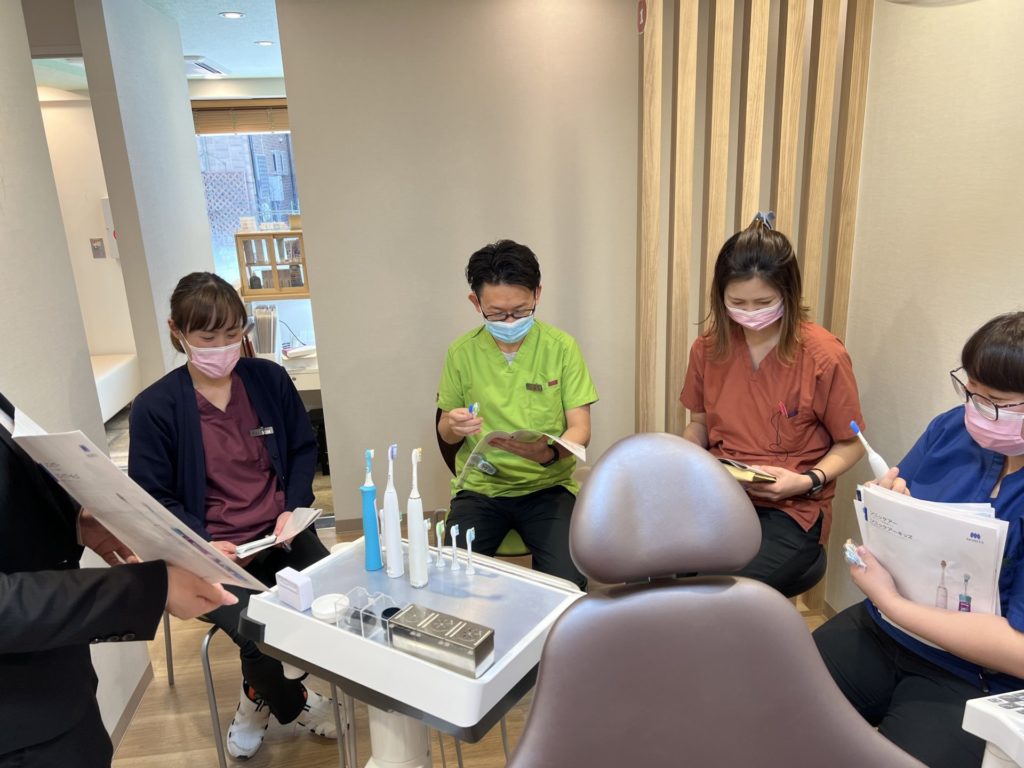 電動歯ブラシの勉強会🪥スタッフ全員のスキルアップのためにお昼休みに勉強会を開きました🌸